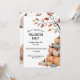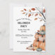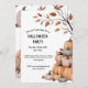 Invite your friends and family to an unforgettable celebration with our card. This charming design combines a stack of vintage pumpkins in pastel colors and an autumn tree adorned with delicate leaves, creating the perfect atmosphere for Halloween. With a minimalist typography and spooky, this card is ideal to give a classy and festive touch to your event. Moreover, the reverse presents a beautiful pattern of pumpkins and floating leaves that capture the spirit of the season.