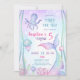 A nautical themed birthday invitation featuring illustrations of the seabed, a cute octopus, an adorable jellyfish, and a magical mermaid tail.