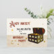 A vintage style card with a treasure box filled with gold coins and jewelries. Invite your friends and relatives to let them find other treasures in your party. Perfect for a boy’s pirate themed party.