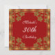Invitation Birthday Red Gold & Gold Flowers & trim, white writing Abstract Party Skinny Long. Birthday Anniversary