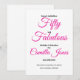 A beautiful, modern, 50th Birthday invitation you can personalize and send out for your fiftieth birthday party celebration. The words "Fifty and Fabulous" are set using popular typography. The text colors can be changed using the edit menu. Other colors and patterns are available.