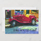This colour photograph of a beautiful red vintage automobile makes the perfect invitation for the classic car buff or oldtimer. Shown to advertise a get together to celebrate a milestone birthday but both sides are fully customisable for any occasion including a retirement, car show, antique sale, anniversary, etc.