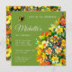 Hap - bee Birthday! Happy flowers and a happy bee buzzing around a sweet birthday invitation, painted with watercolors.