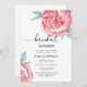Bridal Shower invitations feature adorable watercolor flowers in soft pink with emerald leaves.