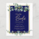 Suitable for any season, this navy blue and greenery design is perfect for a spring, summer, fall, or winter wedding, and its elegant and modern style makes it a versatile choice for boho, classic, elegant, modern, outdoor, garden, woodland, forest, barn, or countryside themed weddings.