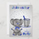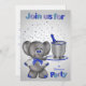 Invite your guests to a divorce party for anyone in general with a card featuring a cute elephant wearing eye glasses decked out in a cute jacket with a bow tie carrying a tray with his trunk. The tray has a bottle of champagne being chilled in a fancy ice bucket against a gradient background with silver stars and text. Design by Laurie Schneider/Elements by La galerie de Jackie/Diana'z Creationz