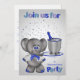 Invite your guests to a welcome home party for anyone in general with a card featuring a cute elephant wearing eye glasses decked out in a cute jacket with a bow tie carrying a tray with his trunk. The tray has a bottle of champagne being chilled in a fancy ice bucket against a gradient background with silver stars and text. Design by Laurie Schneider/Elements by La galerie de Jackie/Diana'z Creationz