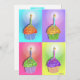 One birthday-anniversary candle burns on each of the four adorable pop art cupcakes covered in rainbow jimmies. It's a celebration of delicious pop art pastries to put the frosting on your special day. Have some fun decorating these whimsical cupcakes and Customise your purchase with a personal quote, photo or name!
