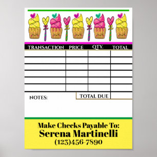 Elegant Pink Green Peony Floral Invoice Receipt Card