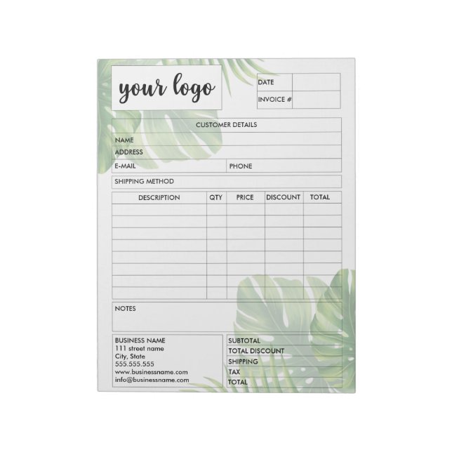Invoice Business Sales Form Receipt, Add Logo Notepad
