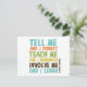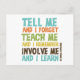 Benjamin Franklin quote reads "Tell me and I forget. Teach me and I remember. Involve me and I learn."! This awesome inspirational message is available in multicolor text on T-shirts, hoodies, tote bags, magnets, mugs, key chains, buttons, water bottles, and many other items great for anyone who values education!