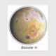 Io is the yellow volcanic moon of Jupiter. The yellow is sulphur, and the black and orange splotches are volcanos.