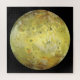 Io is the yellow volcanic moon of Jupiter. The yellow is sulphur, and the black and orange splotches are volcanos.