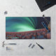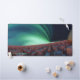 An aurora, green due to ionised oxygen, appears low on the horizon, a city sits in the foreground. Customise by adding your own text.