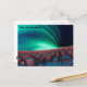 An aurora, green due to ionised oxygen, appears low on the horizon, a city sits in the foreground. Add your own text.
