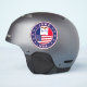 Iowa design with flag of Iowa and flag of United States, rounded shape.