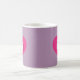 This coffee mug features a vibrant hot pink heart containing the bold, white, rounded lower case letters ia, a playful abbreviation for Iowa, the hawkeye state.