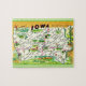 A vintage, colourful postcard map of the state of Iowa repurposed on an 8 X 10 jigsaw puzzle.