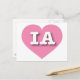 This postcard features a vibrant pink heart containing the bold, white, upper case letters IA, the official abbreviation for Iowa, the hawk eye state. The reverse side of the postcard is blank awaiting your handwritten sentiments or customised text. Choose font style, size, and colour.