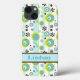 This personalised Case-Mate Barely There iPad mini case has a white and aqua blue striped background with an abstract pattern of lime green, turquoise, brown and white flowers and circles with a band to add your name, initial, monogram or other text to. This modern and trendy new case makes a chic statement for the hip young fashionista! If you need assistance, email niteowlstudio@gmail.com.