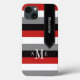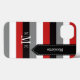 This personalised black, white, grey, and red Case-Mate Barely There iPad mini Retina display case has a wide bold striped background pattern and a black banner ribbon with white stitching that you can add your name, initials, monogram or other text to. This modern and trendy new case makes a chic statement for the hip young fashionista! If you need assistance, email niteowlstudio@gmail.com.