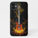 iPhone 11 case is shown in a artful guitar print on a black background.