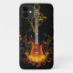 iPhone 11 case shown in a artful guitar print on a black background.