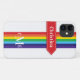 This personalised Case-Mate custom iPhone 11 case has a rainbow-coloured vertical stripes pattern down the centre with a red banner ribbon running horizontally below the camera that has white stitching and white lettering that you can customise with your name or other text. There is also a 3-letter monogram centred at the bottom. You'll be proud to show off this modern and trendy new case that makes a chic statement! If you need assistance, email niteowlstudio@gmail.com.