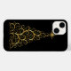 iPhone 14 case is shown in a fancy Christmas Holiday tree comprised of Gold swirls.