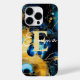 iPhone 14 Pro case with Blue & Gold Alcohol Ink