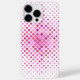 This iPhone 14 pro max case is shown in a pink and white abstract diamond print design.