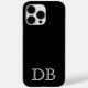 iPhone 14 pro max case is shown in the solid colour of black with initials.