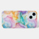 This iPhone 15 case is shown in a pretty colourful ink swirl art print.