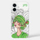 IPhone 16 Phone Cover with Green Flapper Girl on it will add a colourful flair to your phone. Personalise with your initials.