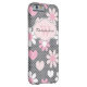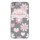 This personalised pink, white, and grey Case-Mate custom iPhone 6 case has pink and white hearts and daisy flowers on a grey background with a black polka dots pattern! add your name, initials, monogram or other text to this modern and trendy new case and show everyone what a chic fashionista you are! If you need assistance, email niteowlstudio@gmail.com.