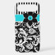 This personalised black and white Case-Mate custom iPhone 6 Plus case has a floral damask and striped background pattern with an aqua blue and white band and flower with circle to add your initial, monogram or other text to. This modern and trendy new case makes a chic statement for the hip young fashionista! If you need assistance, email niteowlstudio@gmail.com.