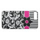 This personalised black and white Case-Mate custom iPhone 7 case has a floral damask and striped background pattern with a hot pink, black, and white band and flower with circle to add your initial, monogram or other text to. This modern and trendy new case makes a chic statement for the hip young fashionista! If you need assistance, email niteowlstudio@gmail.com.