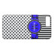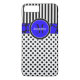 This personalised black and white Case-Mate custom iPhone 7 Plus case has a fun polka dot, striped background pattern with a cobalt blue and black giraffe print band and circle to add your name, initials, monogram or other text to. This modern and trendy new case makes a chic statement for the hip young fashionista! If you need assistance, email niteowlstudio@gmail.com.