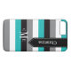 This personalised black, white, turquoise blue and grey Case-Mate custom iPhone 7 case has a wide bold striped background pattern and a black banner ribbon with white stitching that you can add your name, initials, monogram or other text to. This modern and trendy new case makes a chic statement for the hip young fashionista! If you need assistance, email niteowlstudio@gmail.com.