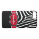 This personalised black and white Case-Mate custom iPhone 7 Plus case has a fun zebra print striped background pattern with a red and black band to add your name, initials, monogram or other text to. This modern and trendy new case makes a chic statement for the hip young fashionista! If you need assistance, email niteowlstudio@gmail.com.