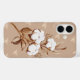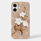 Bring a touch of rustic charm to your iPhone 16 with our soft cotton blossom case. The design features a beautifully rendered cluster of fluffy white cotton flowers, complete with warm brown stems and leaves, creating a natural and comforting aesthetic. Delicate, faded cotton plant silhouettes are subtly scattered across a gentle beige background, enhancing the overall organic feel. This case offers a unique blend of botanical beauty and cosy simplicity while providing reliable protection for your iPhone 16.