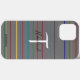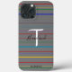 Cell phone case personalised with your name and initial, with a colourful lines, customisable colour background . Designed by HAMbyWhiteGlove aka HAMbWG. Shown in grey.