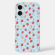 A playful pattern filled with hand-painted strawberries, tiny white flowers, and green leaves on a light blue pastel background. Great for spring-themed products or cute fabric prints.