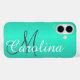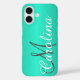 Turquoise faux brushed metal steal personalised with your name and monogram. Mobile iPhone 16 phone case.