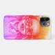 A colourful phone case featuring an artistic sketch of a young girl with large glasses and curly hair. She is adjusting her glasses with one hand and has a gentle smile. The drawing is shaded with a gradient of warm red, orange, pink, and purple hues, giving it a vibrant and playful feel.Girk