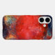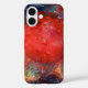 The phone case depicts the image of a red moon mixing in with shades of green and orange and shattered glass!