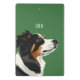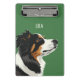This mini clipboard case has a minimalistic design with a solid green background and an Australian shepherd dog illustration. It is a great design for dog owners and lovers - especially Australian shepherd owners.
