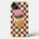 Vanilla, chocolate and strawberry ice cream scooped into a waffle cone. Chequered background pattern of vanilla, chocolate and strawberry ice cream colours. This design can be customised and transferred to many other phone cases.