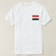 The front of this t-shirt bears a small Iraqi flag with its familiar green script in a white band with red band above and black band below, while the back displays a relief map of Iraq. Available on t-shirts, sweatshirts, polos, long-sleeves and more.