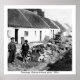 Vintage rural Ireland poster view of whitewashed thatch cottages & barefoot children in Claddagh village, Galway Ireland, early 1900's.